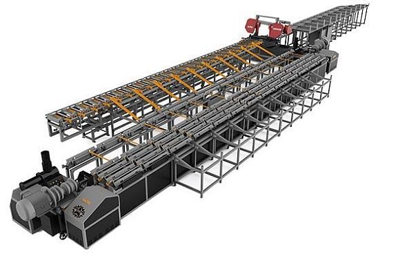 Автоматическая линия резки и сортировки арматурной стали с функцией холодной накатки резьбы на арматуру под соединительную муфту. Диаметр резки 16 - 50 мм. Диаметр накатки резьбы 16-40 мм. Частота реза 2.5 реза в минуту.
